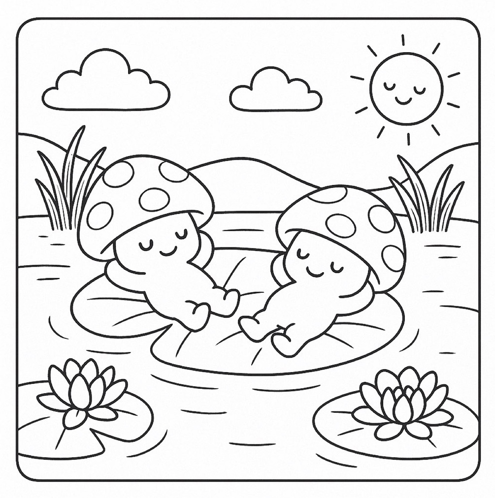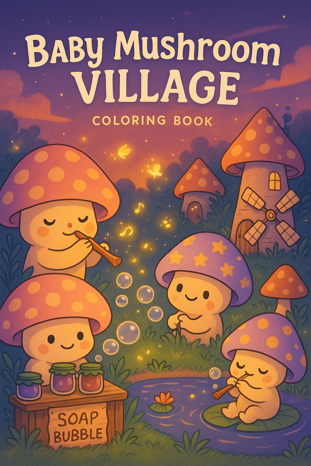 Step into the magical world of Baby Mushroom Village, where the tiniest mushrooms live the coziest lives! Perfect for kids, teens, and adults alike, this enchanting coloring book is filled with adorable baby mushroom characters engaging in heartwarming adventures—from building a sandcastle to running a bubble workshop and weaving rugs from grass.
