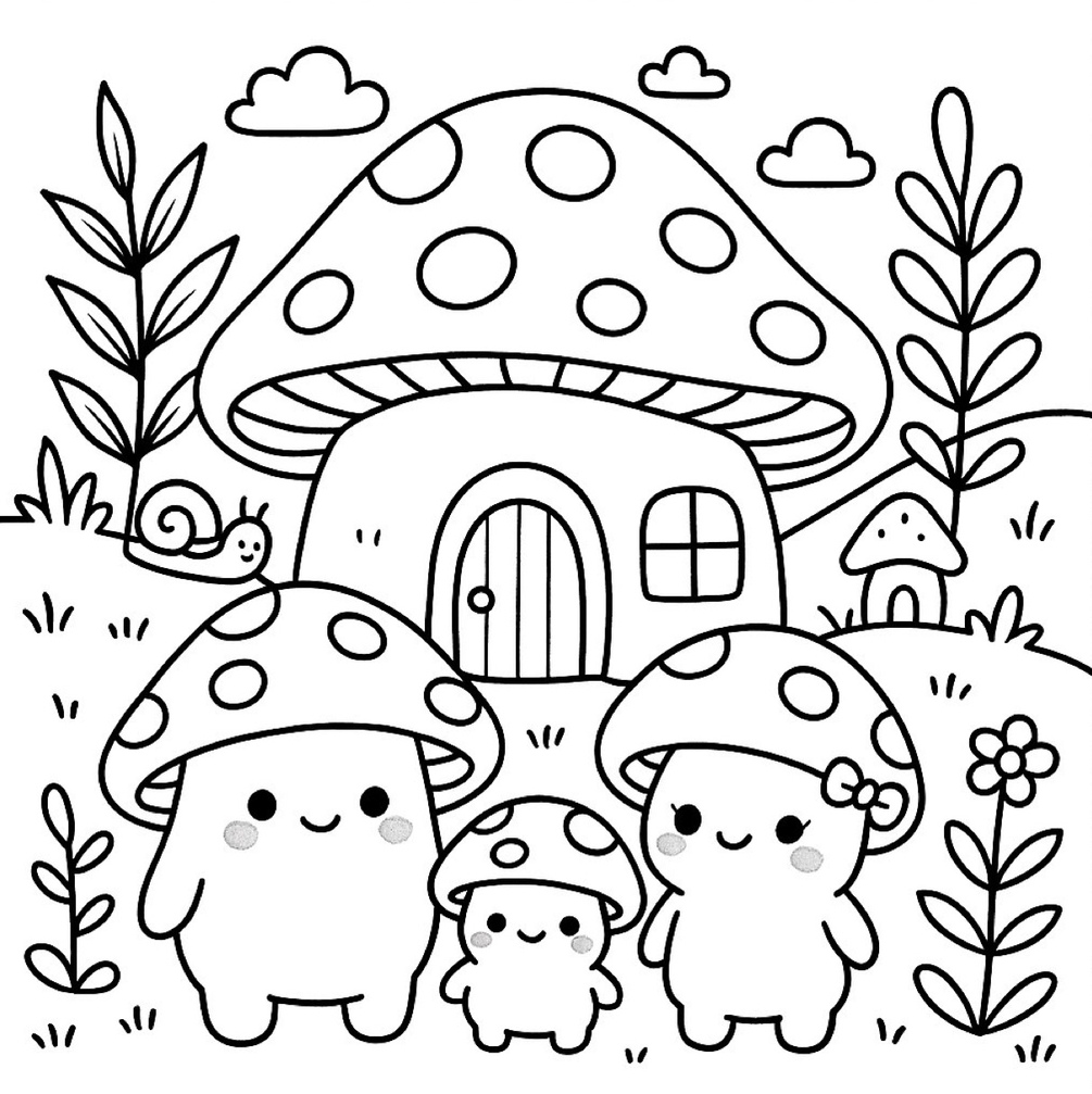 A cute digital colouring book for Baby Mushroom Village!