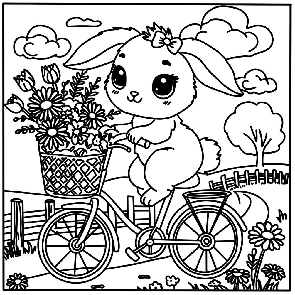 Bring these adorable bunny scenes to life with your favourite colours and make each page uniquely yours! 🐰🌷