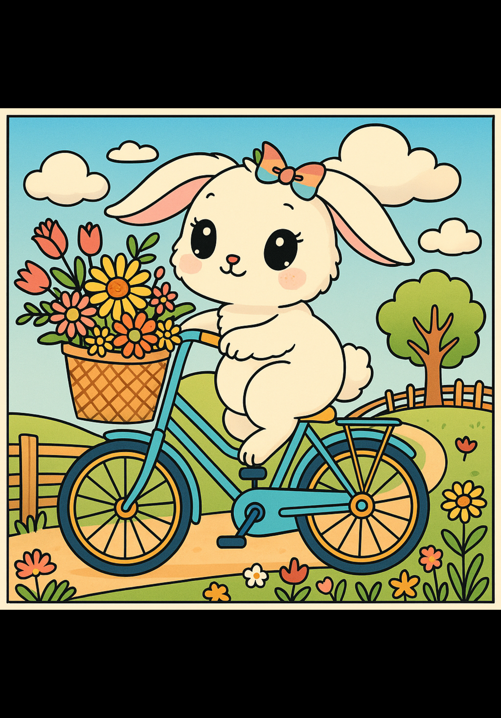 - charming bunnies engaged in fun activities like riding bikes, having picnics and exploring landscapes